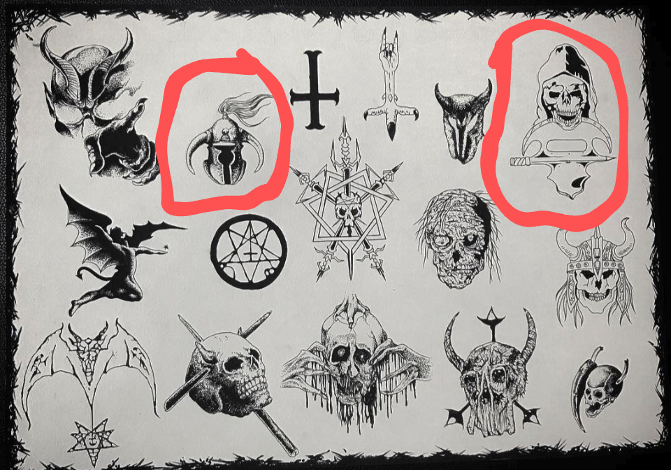 I'm looking at this metal flash sheet and most are pretty obvious but the ones I've circled are driving me mad, I know I recognize them but can't work out what bands they are arghhhh